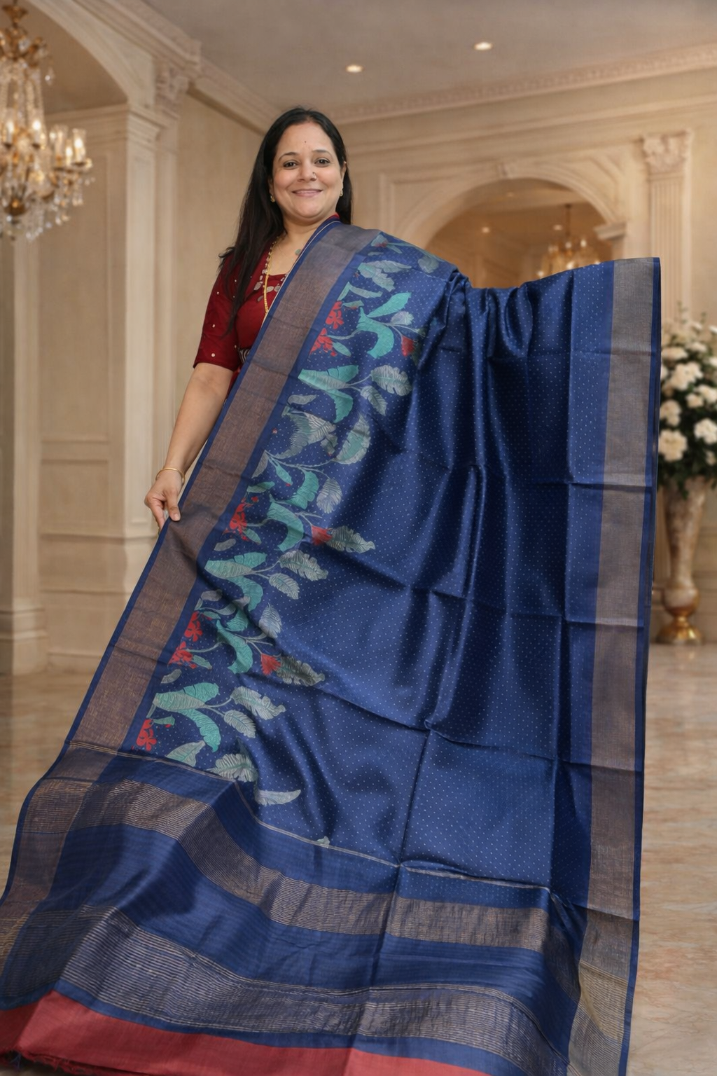 Printed Tussar – Floral Motif